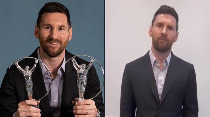 2023年劳伦斯世界体育奖颁奖典礼上,梅西获得年度最佳男运动员奖。而梅西一张手拿奖杯的照片所穿的衣服与他日前视频道歉时是同一套。