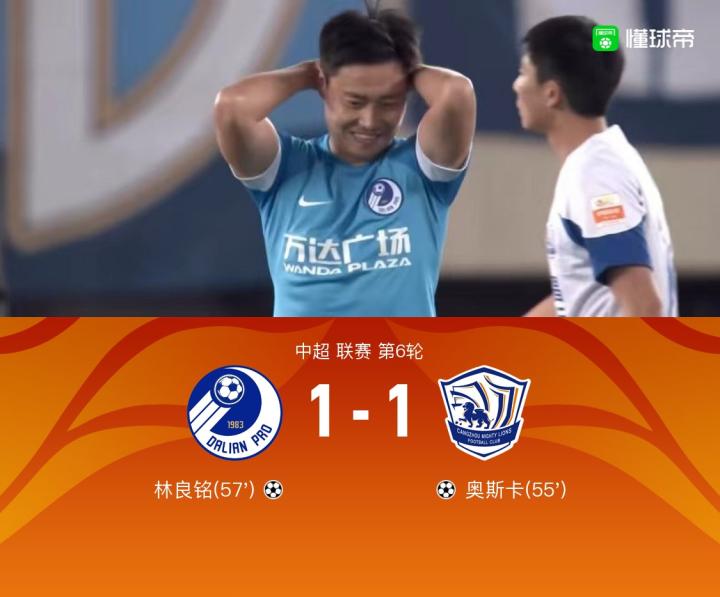 【大连1-1沧州,奥斯卡破门,林良铭头球扳平,曼巴进球无效】