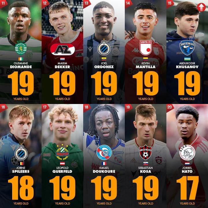CIES整理的20岁以下最有潜力的中后卫球员TOP20