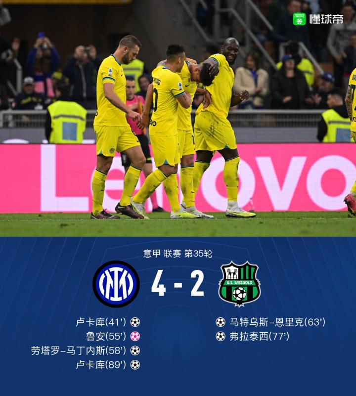 国米4-2萨索洛迎7连胜,寿星卢卡库双响+世界波,劳塔罗建功