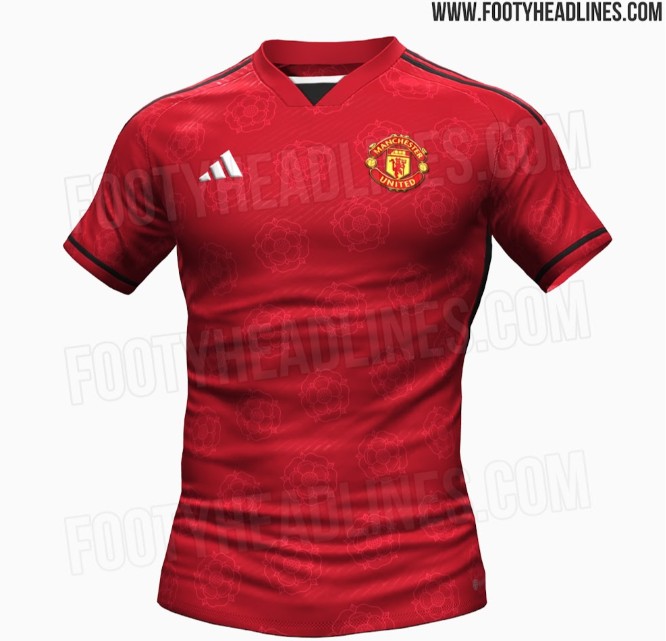 根据FootyHeadlines最新透露的图,曼联2023/24赛季的主场球衣将会用红玫瑰的暗纹表达对曼彻斯特的敬意。