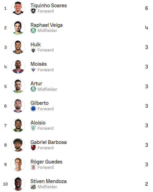 博塔弗戈当家射手蒂基尼奥轮均1球,继续霸榜