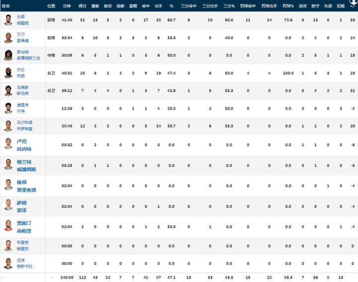 末节,双方持续拉锯,绿军塔图姆继续刷新个人得分至51分,随着布朗连续得分将分差拉大至30分,双方还剩3分多钟逐渐换下主将,全场结束,凯尔特人112-88大胜76人。