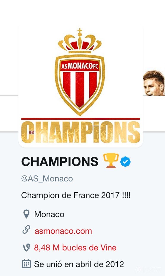 你或许会认为这是教练和球员们口无遮拦或者说漏嘴,那么摩纳哥官方的态度或许就能说明一切了。在夺得法甲冠军后,摩纳哥官方的Twitter简介是这么写的:2017年法国冠军(Champion de France 2017!!!!)。注意,不是“法甲”,是“法国”。