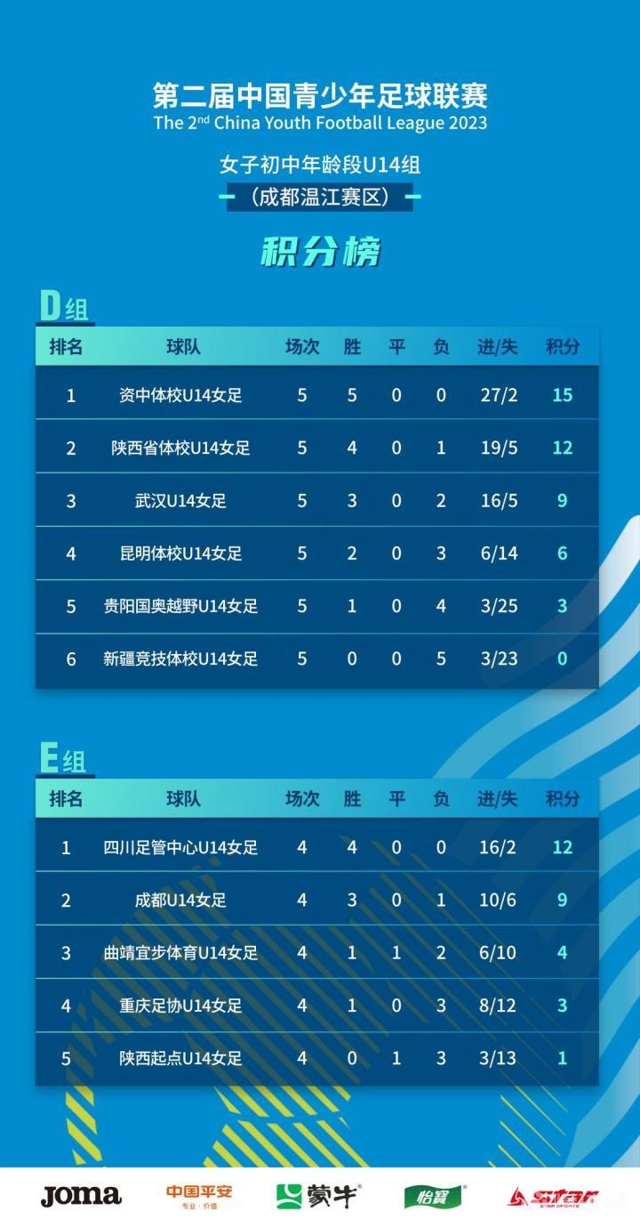 2023第二届中国青少年足球联赛女子初中年龄段U14组第一阶段三个赛区小组赛已经全部结束,包括无锡U14女足、苏州U14女足、山东体彩U14女足在内的24支球队晋级,下一阶段比赛将于6月进行。