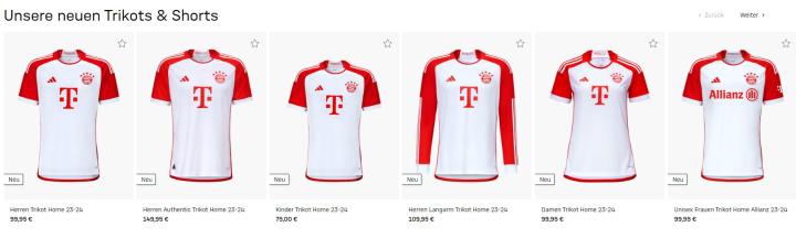 根据拜仁慕尼黑德国区官方商城显示,新赛季一件球迷版主场无印号短袖球衣的价格上涨到了99.95欧元一件(折合人民币760元),而在上一年,一件拜仁主场球迷版短袖球衣的价格还是89.95欧元。