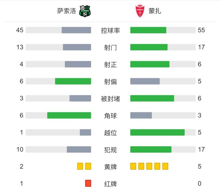 北京时间5月20日2:45,意甲第36轮,萨索洛主场对阵蒙扎。上半场,巴伊拉米远射被门将扑出,贝拉尔迪点射破门。下半场,丘里亚抽射破门,鲁安累计两黄被罚下,维尼亚托抽射打高,佩西纳补时绝杀,最终,萨索洛1-2蒙扎。
