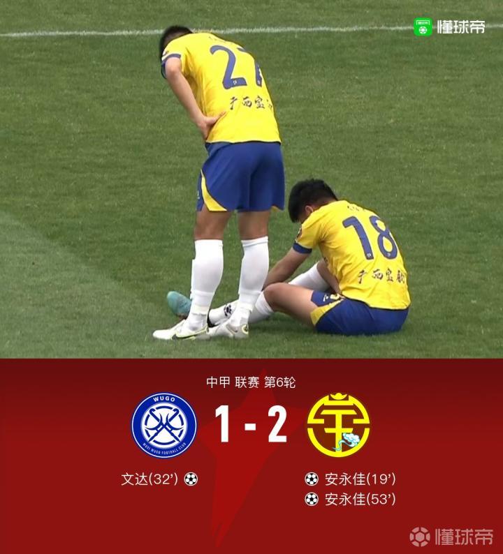 无锡1-2广西遭六轮不胜,安永佳双响建功,文达破门