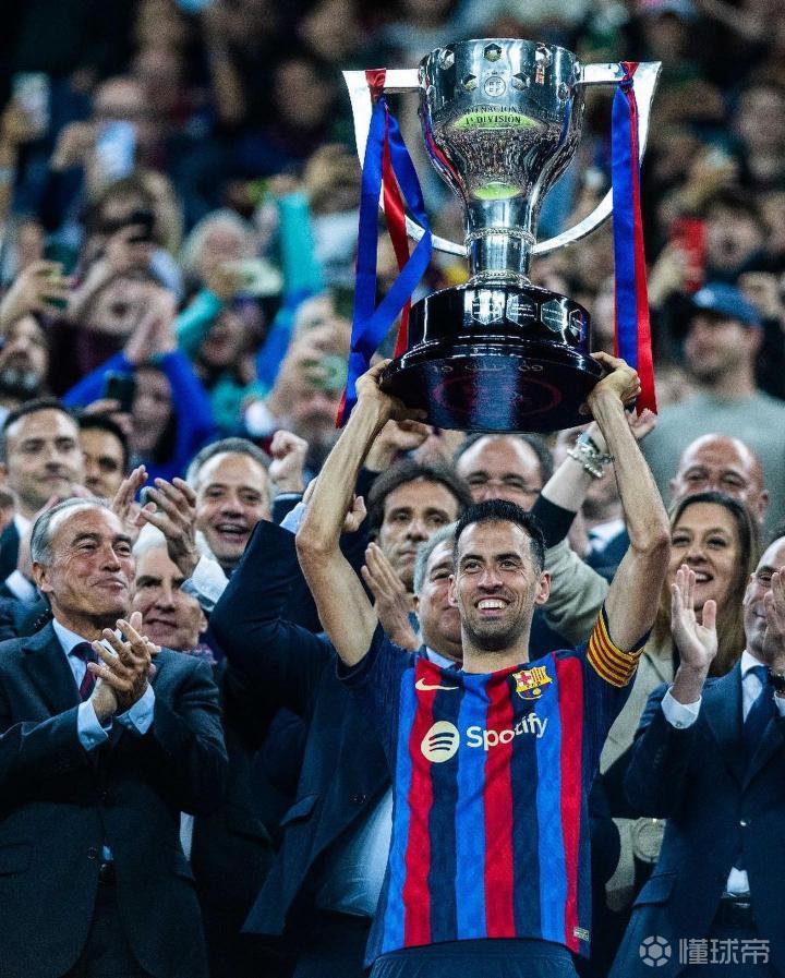 如今,布斯克茨作为巴萨第一队长捧起了西甲冠军奖杯。