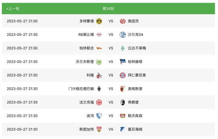 我们再关注一下最后一轮的对阵情况。可以看到,最后一轮9场比赛当真是没有一场废的,所有比赛的结果都将对德甲最后的剧本产生影响和波动。