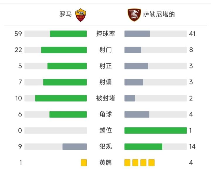 第47分钟,佩莱格里尼任意球被扑,沙拉维补射破门,罗马1-1萨勒尼塔纳!