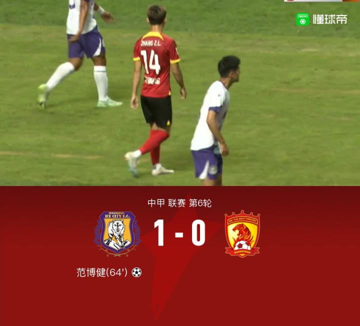 【广州0-1黑龙江连续六轮不胜,埃里克斯助攻范博健一锤定音】