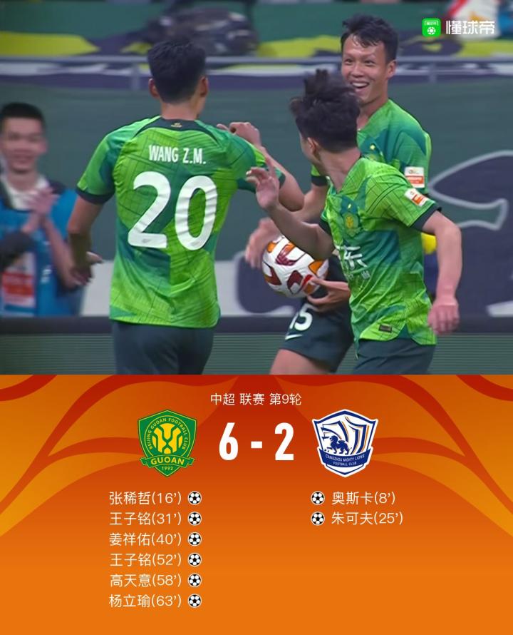 【国安6-2沧州,姜祥佑传射,王子铭双响,张稀哲里程碑战破门】