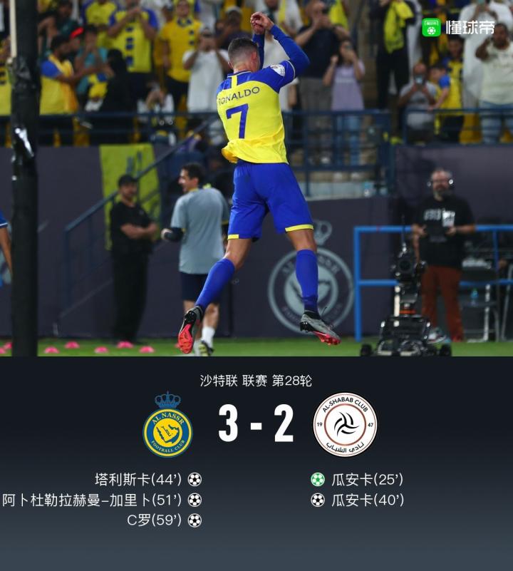 【利雅得胜利让二追三3-2利雅得青年,C罗一剑封喉+头槌中楣】