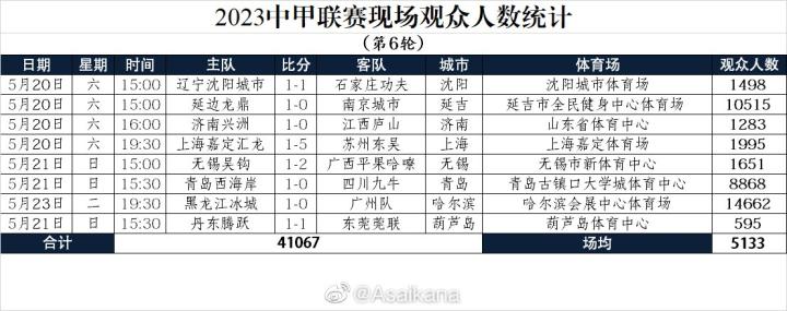 中甲第6轮现场观众:黑龙江vs广州14662人最多,场均5133人ETChalmers2023-05-24 10:16中甲第6轮战罢,本轮现场观众人数统计出炉,黑龙江冰城vs广州队14662人最多,场均5133人。中甲第6轮现场观众人数统计辽宁沈阳城市vs石家庄功夫 1498人延边龙鼎vs南京城市 10515人济南兴洲vs江西庐山 1283人上海嘉定汇龙vs苏州东吴 1995人无锡吴钩vs广西平果哈嘹 1651人青岛西海岸vs四川九牛 8868人黑龙江冰城vs广州队 14662人丹东腾跃vs东莞莞联 595人数据来源:@Asaikana 展开更多