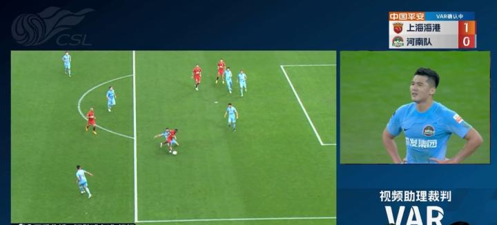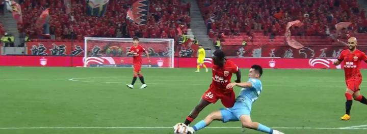 第38分钟,噩梦再次降临,钟义浩在河南禁区内倒地铲球救险,卡隆就此倒下,主裁判在经过VAR提醒后长时间观看了视频回放,最终判罚给上港点球,奥斯卡一蹴而就,0-2,河南队老牛拉破车,摇摇欲坠。