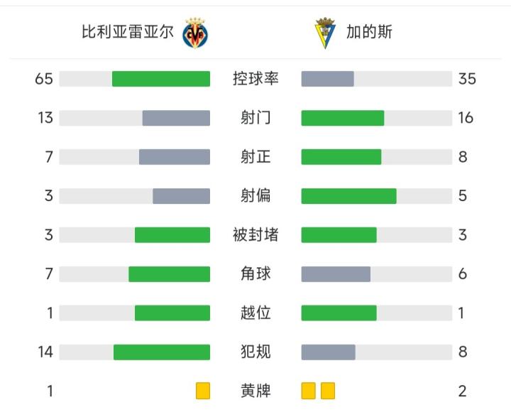 第20分钟,雅克松1V2后过掉门将推射破门,慢动作显示雅克松有推人动作,但裁判没有判犯规,比利亚雷亚尔1-0加的斯!