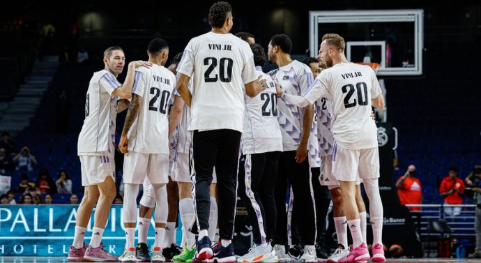 皇马篮球队声援维尼修斯,赛前集体身穿20号球衣老龄儿童 @懂球帝2023-05-25 12:57皇马篮球队在比赛前,全队身穿维尼修斯的20号球衣向他表示支持。维尼修斯因为在与瓦伦西亚的比赛中遭到种族歧视,引发巨大争议,包括巴西总统在内的众多足坛、政界人士都站出来声援维尼修斯。皇马篮球队在近日的比赛中也站出来声援维尼修斯,皇马篮球队全员身穿维尼修斯的20号球衣加油打气,并展示冠军奖杯。展开更多