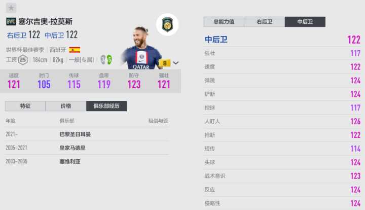 BWC拉莫斯的首发定位是右后卫,但是这不妨碍他在中卫表现抢眼。这张拉莫斯的第一个闪光点是,凭借出色的身体素质,可以很好地和大模型球员对抗,常常可以挤走球员完成断球;第二点,拉莫斯的防守范围非常广,不仅在禁区,还能有效覆盖肋部以及弧顶位置,他抢断积极性高;第三,BWC拉莫斯伸脚抢断快,动作变向迅速,1对1盯防效果好;最后,拉莫斯的后场传球让人放心,得到球权后不妨让他来把球往前送。