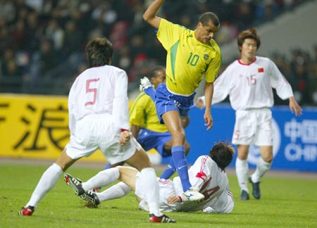 2002年杀入世界杯前,中国队获得了大把的热身赛机会,包括与南斯拉夫、葡萄牙等强队都有过交手。韩日世界杯后,中国队还在广州与巴西进行了一战,双方0-0战平后,获得了宝贵的积分。