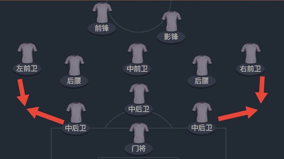 这套阵型中场双后腰的配置可以在对手进攻时构筑起第一道防线,而三后卫的配置保障了禁区内的正面防守稳定性。
