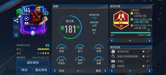 游戏中,欧冠活动推出的这张欧冠冠军之路版本沃克同样是非常引人注目,目前他也已成为141能力值的该系列最高一档,天赋则是配备了边后卫常见的角斗士。