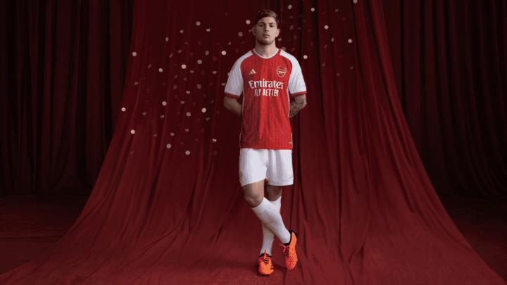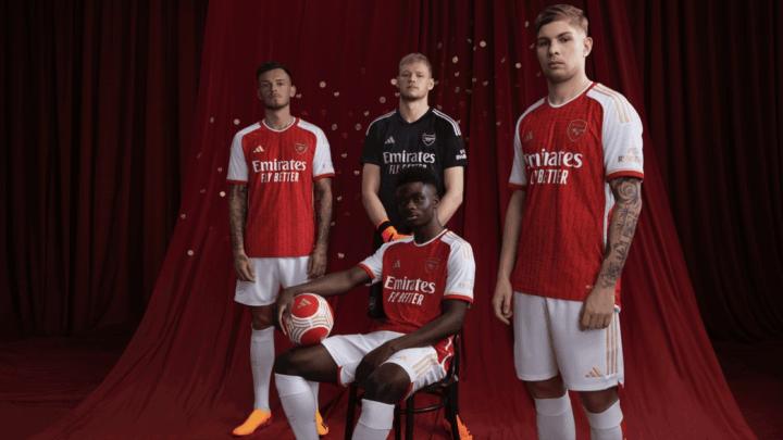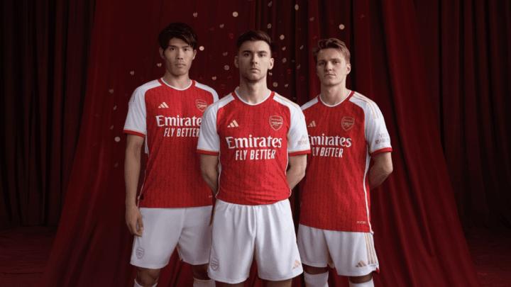 阿森纳正式发布23-24赛季主场球衣:金边致敬不败赛季20周年老龄儿童 @懂球帝2023-05-26 16:44阿森纳官方正式发布了2023-24赛季的主场球衣,阿森纳新赛季主场球衣将采用金边设计,致敬不败赛季20周年。阿森纳官方同时确认,阿森纳将身穿这款新球衣出战同狼队的最后一场比赛。阿森纳新赛季主场球衣依然采用了经典的红白配色,徽章、阿迪达斯标志以及袖子上的条纹,都采用金色,为了致敬2003-04赛季,阿森纳赛季不败的壮举,同时不败赛季的战绩也绣在了球衣侧面。展开更多