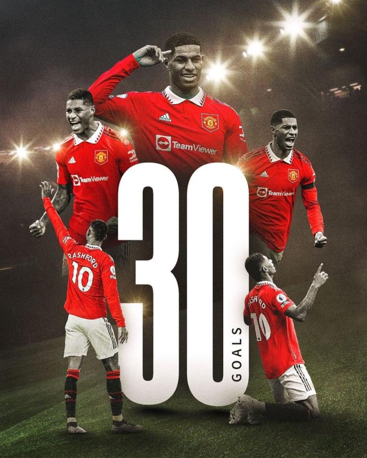 在与切尔西的比赛中打入一球后,拉什福德本赛季各项赛事已为曼联打入30球,创个人职业生涯单赛季新高,成为自2012-13赛季的范佩西以来,首位单赛季打入至少30球的曼联球员。