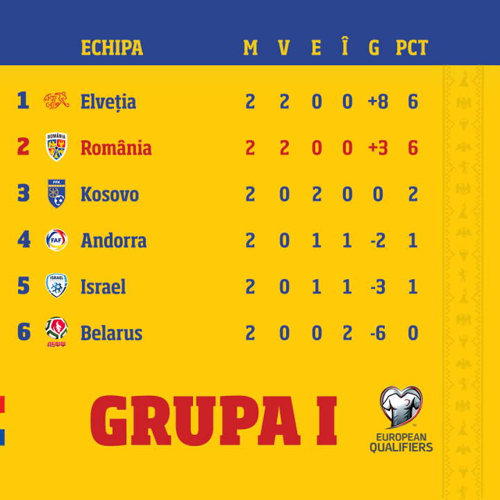 欧预赛前2轮战罢,罗马尼亚队积6分,排名小组第二,瑞士队凭借净胜球上的优势,高居小组第一,而在接下来的国际比赛日中,罗马尼亚队将迎来两场硬仗,分别是6月16日客战科索沃以及6月19日对阵领头羊瑞士。按照主教练约尔德内斯库的想法,罗马尼亚要在这两场比赛中至少拿到4分。
