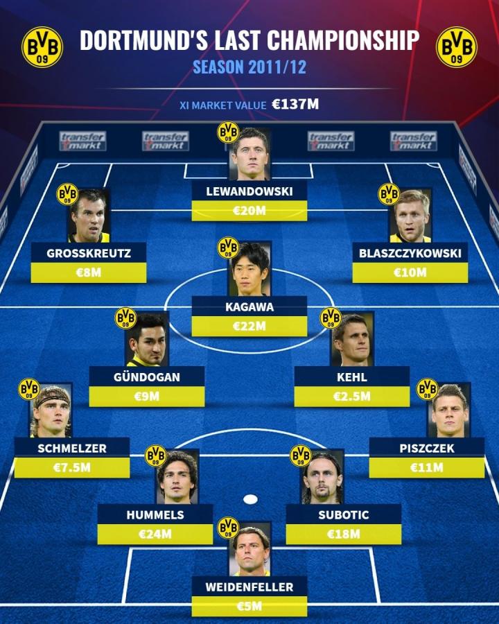 上次夺得德甲冠军的多特蒙德阵容你都认识吗?