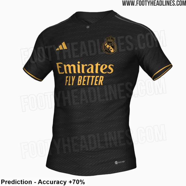 皇家马德里23-24赛季第三球衣谍照——黑黄搭配