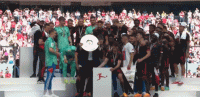 夺得德甲11连冠!拜仁球员挨个上台领取奖牌。