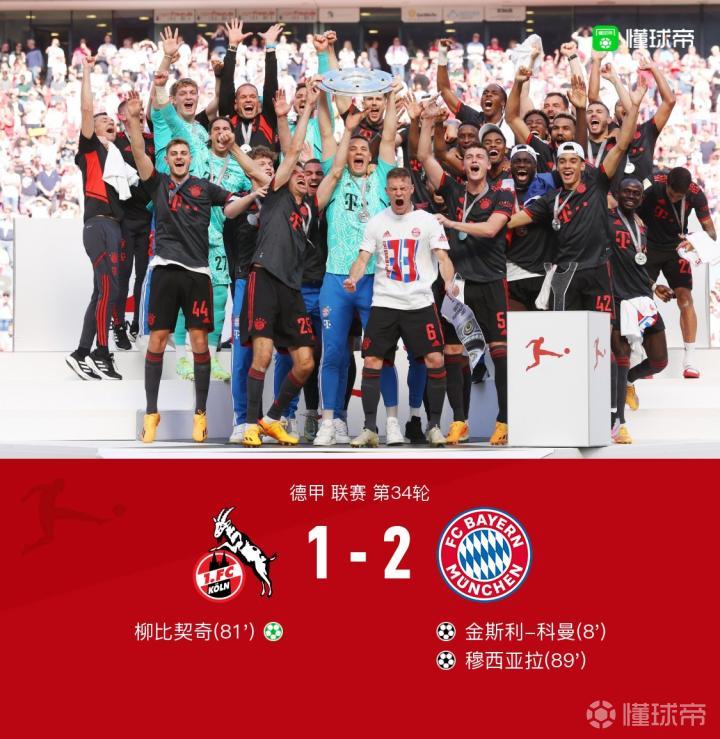 杰士邦丨拜仁2-1科隆反超多特夺得德甲11连冠,穆西亚拉绝杀