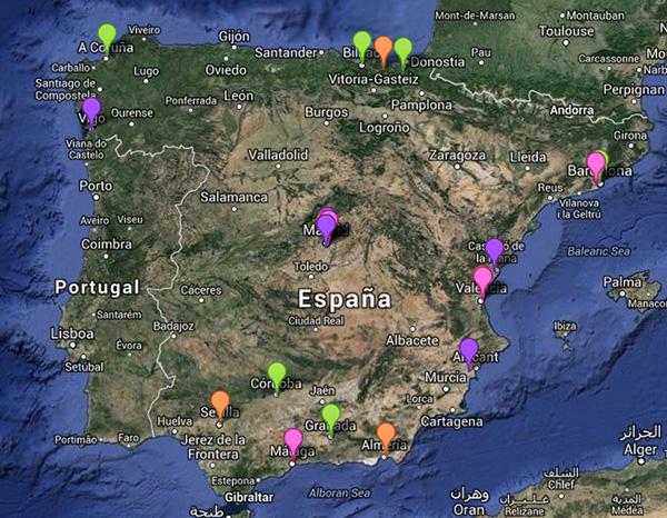 而从分布地带看,除了马德里的四支球队外,其余球会绝大多数都位于沿海地带(科尔多瓦内陆),这也印证了西班牙足球版块的地理分布特点。