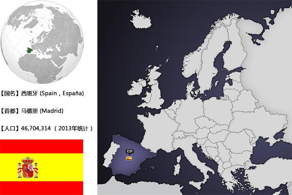 西班牙王国(西语:Reino de España),简称西班牙(España,Spain),是位于欧洲西南部伊比利亚半岛的君主立宪制国家。国土面积约50.6万平方公里。西邻葡萄牙,东临地中海,东北依比利牛斯山与法国为界,北靠大西洋的比斯开湾,南隔直布罗陀海峡与非洲的摩洛哥相望。地形多山,中部高原属大陆性气候,北部和西北部沿海属海洋性温带气候,南部和东南部属地中海型亚热带气候,阳光充足,春秋多雨。