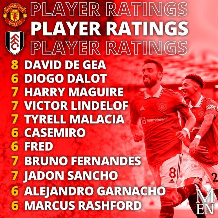 英超最后一轮,曼联主场2-1战胜富勒姆,桑乔、B费各入一球,赛后,曼晚给本场比赛曼联球员的表现打了分。