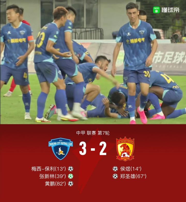 【南京3-2送广州开局7轮不胜,梅西-保利传射+造点,黄鹏破门】