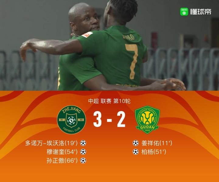 【浙江两度落后3-2逆转国安,孙正傲替补制胜,穆谢奎传射建功】