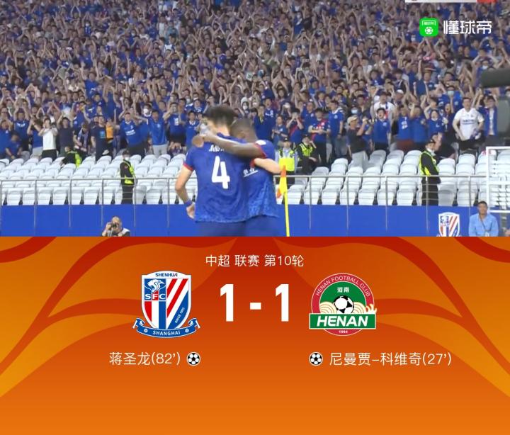 【河南两将伤退1-1申花,科维奇头球破僵,蒋圣龙攻入扳平球】