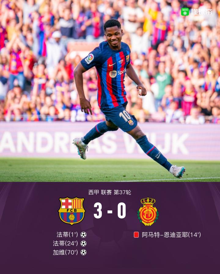 【剑南春丨巴萨主场收官战3-0马略卡,法蒂双响+闪击,加维传射】