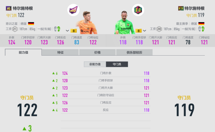 现在最好的特尔施特根是HG,具有极快的下地速度和扑近射能力,应对单刀也不错。23TS可能会在HG的基础上,对他各项数据再提升,神仙扑救应该会更多,完成连续扑救也不是不可能。