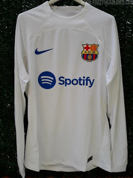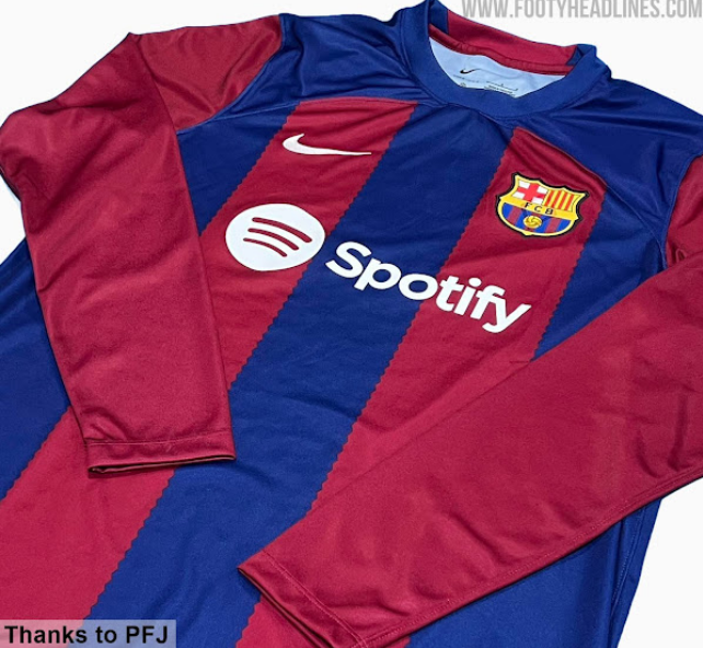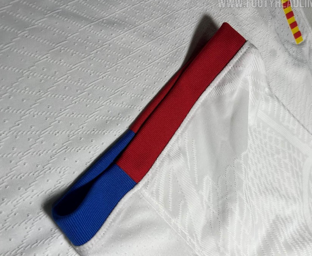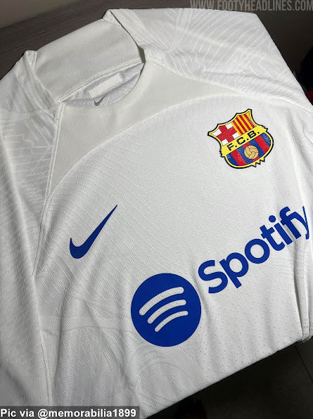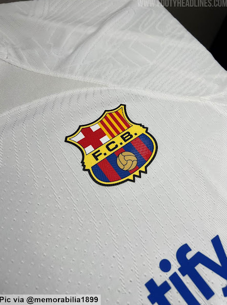 abjack足球装备网站Footy Headlines发布了数张巴塞罗那23-24赛季客场球衣的实物图,