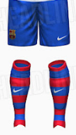 裤子与袜子应该与主场搭配相同,分别为蓝色和红蓝环状设计。