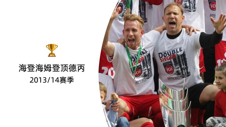 经过5年的历练后,海登海姆在2013-14赛季获得德丙冠军,升入德乙;而在次级联赛沉淀、积累9个赛季后,海登海姆终于在今年升入德甲。