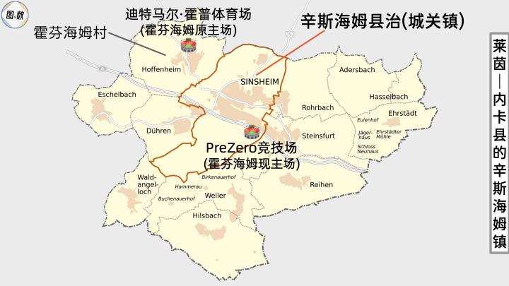 但海登海姆并不是拥有德甲球队的最小城镇,因为同在巴符州的霍芬海姆来自卡尔斯鲁厄行政区莱茵-内卡县的辛斯海姆镇霍芬海姆村,而整个辛斯海姆镇只有3万多人。这几个地方都叫“海姆”,heim与home(家)同源,是德语、挪威语、冰岛语和法罗语中常见的地名后缀。