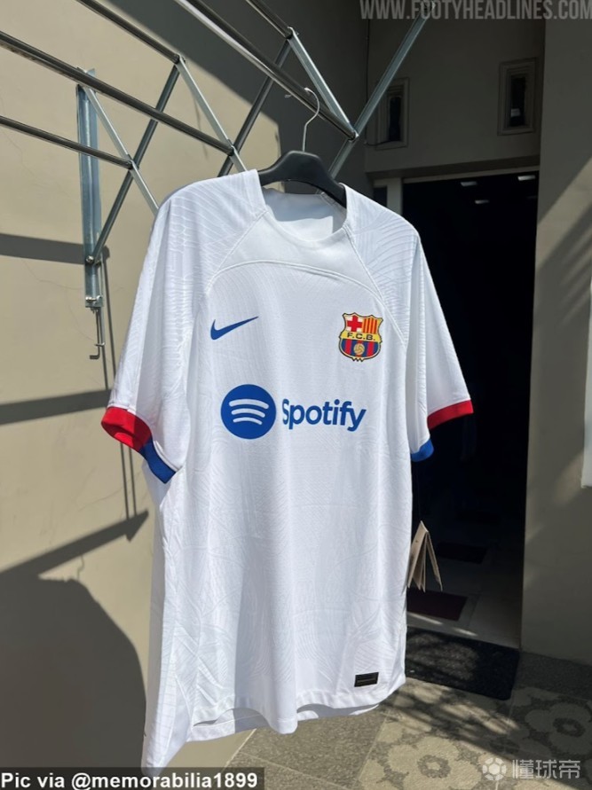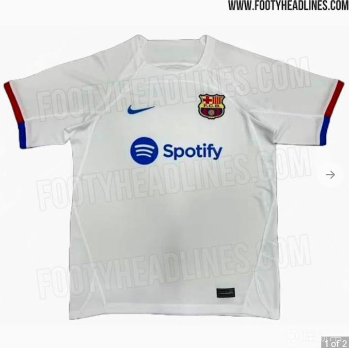 洁白无瑕,巴萨23-24赛季白色客场球衣最新实物图曝光