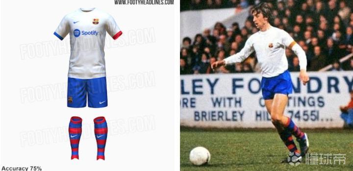 Footy Headlines公布了2023-24赛季巴萨客场球衣的实物图。