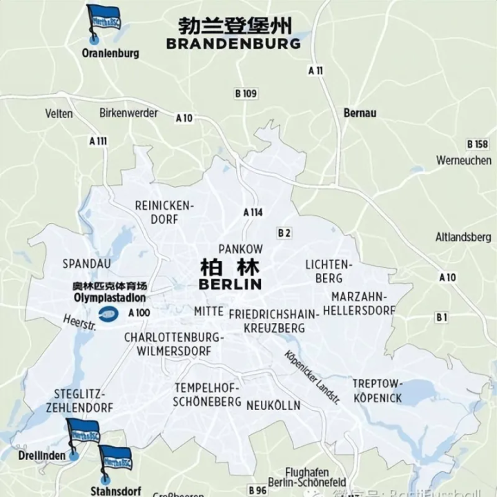 这五支来自柏林的德甲球队,只有柏林联合俱乐部一家位于前东德首都东柏林(东德法定首都是整个柏林)。