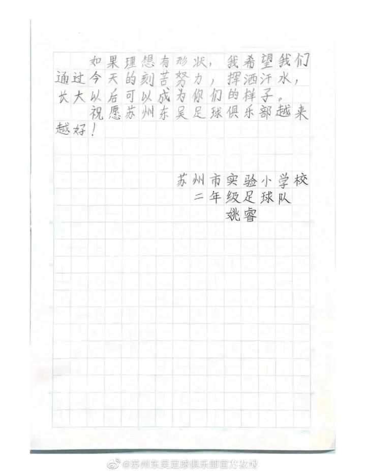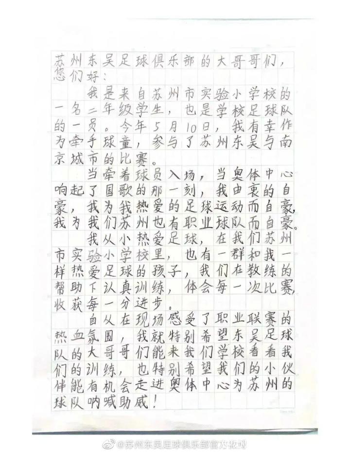 六一儿童节前夕,苏州东吴足球俱乐部收到了一位热心...