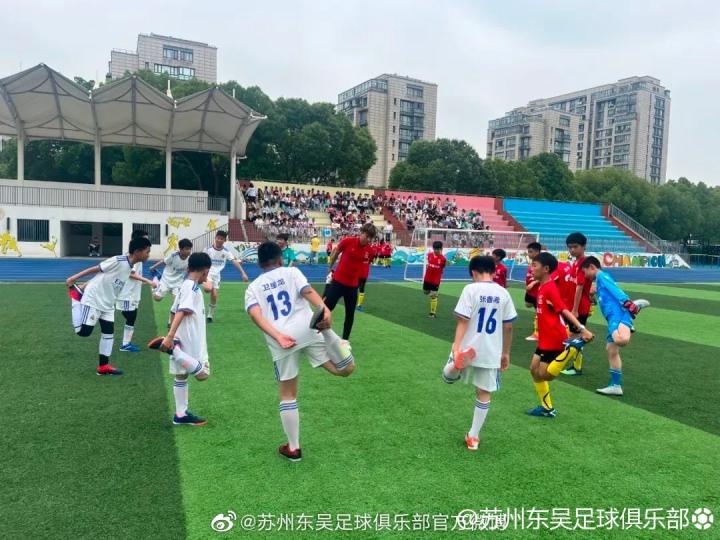 六一儿童节前夕,苏州东吴足球俱乐部收到了一位热心小球迷的来信,这位做过我们比赛球童的小球迷在信中他表达了自己对于足球的喜爱,并热情邀请我们的球员们来到他的学校来观看他们的训练和比赛。 在收到本封信件后,俱乐部派出张竟哲和徐春庆作为球员代表前往小球员所在学校—— 苏州市实验小学来观看小朋友们的比赛训练,他们纷纷表示希望能够将足球的快乐和自己多年踢球的经验分享给这些足球场上的未来之星们。 恰逢六一儿童节,张竟哲和徐春庆给足球队赠送了足球,对抗背心,训练器材,并邀请他们6月3号到现场观看主场比赛。在实小老师的介绍下登场,小朋友们对于两位职业球员的到来表示了极高的热情,并献上了热烈的掌声。随后两名球员带领决赛队伍的实小队员进行赛前热身,并提供了一些战术指导,为比赛进行了开球。听闻低年级足球队正在排练六一节目,队员特意去篮球馆探班并合影留念。 为大力支持苏州青少年足球的发展,从本年度联赛开始,俱乐部设立了公益看台,并邀请了苏州各大青训机构、中小学学生及幼儿园小朋友来到球场近距离观看比赛,其中包含了华师大苏州湾实验小学、苏州市实验小学、星海教育集团胜浦实验小学、彩香教育集团胥江中心小学、相城天元阳光花地幼儿园等学校及十余家苏州足协登记注册的青训机构,参与人数已逾千人,未来我们仍将在这条道路上继续前行,为苏州足球的腾飞做出俱乐部应有的贡献!
